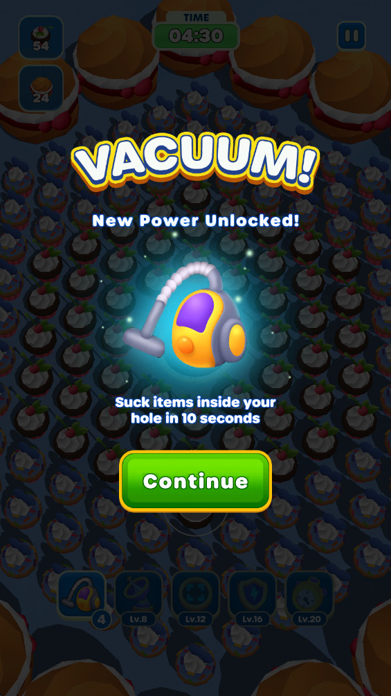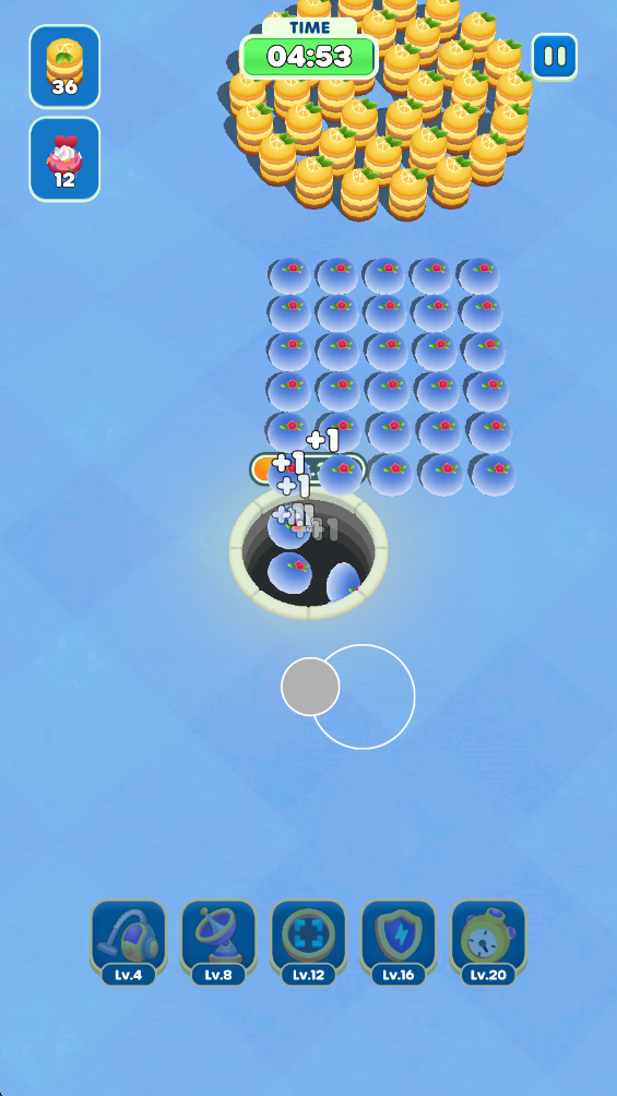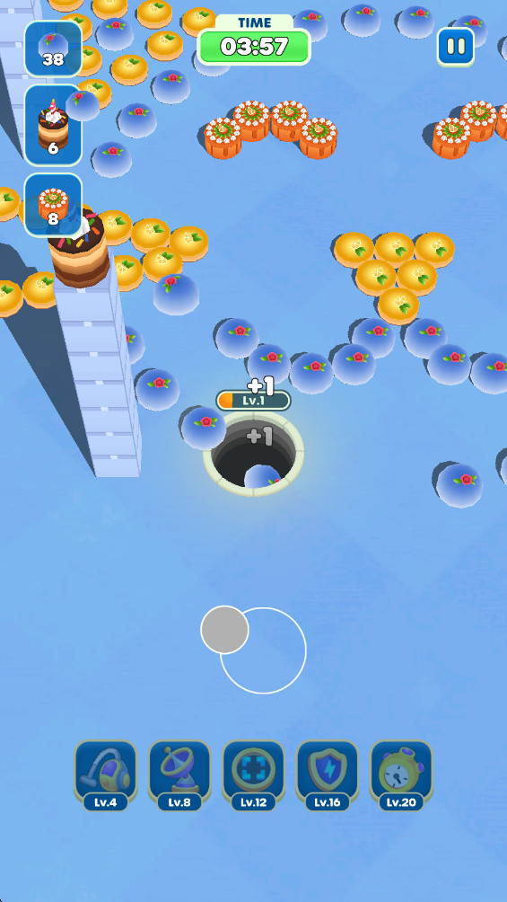 4.吃掉一定的物品之后黑洞会变大,快来吞噬多一点的物品吧。