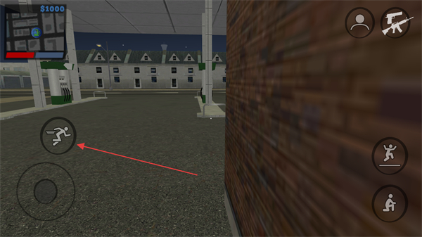 1、通过屏幕左下方的虚拟摇杆控制角色移动,点击左上方的奔跑按钮图标可快速移动。