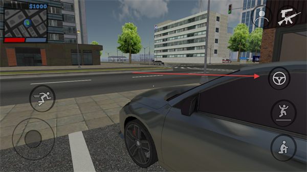3、发现车辆后,靠近并点击右侧出现的方向盘图标,即可驾驶车辆。