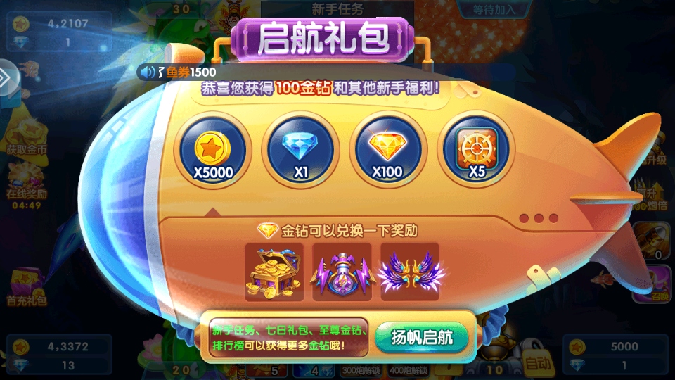 4、升级装备:通过收集游戏中的道具和材料,对捕鱼工具进行升级和强化,增加捕鱼的威力和范围。不断提升装备等级可以更轻松地捕捉大型高分鱼类。