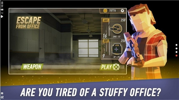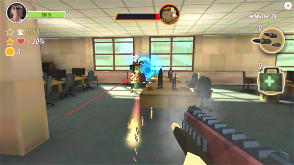 逃离办公室是一款动作射击题材的枪战作品,以白领逃离僵尸侵袭办公室为核心设定,扮演普通白领上班族时,所在城市突遭大量僵尸群侵袭,为生存不得不拿起武器对抗怪物,核心目标是用枪械射击迎面而来的僵尸,最终成功逃出办公室,可利用射击僵尸获取的金币奖励,购买更多武器装备并进行角色升级,以此尽可能提升个人战斗实力。