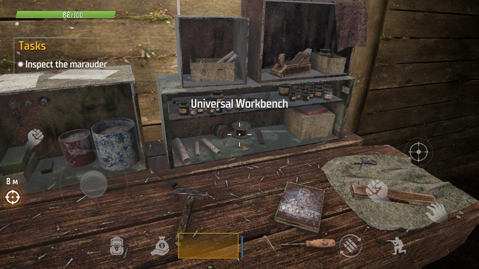 4.靠近工作台后,点击右侧的交互按键就进行交互制作出各种物品了。