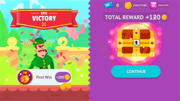 4、持续击败敌人,消耗对方血条至空,即可获得EPICVICTORY的胜利奖励,点击CONTINUE继续下一关。