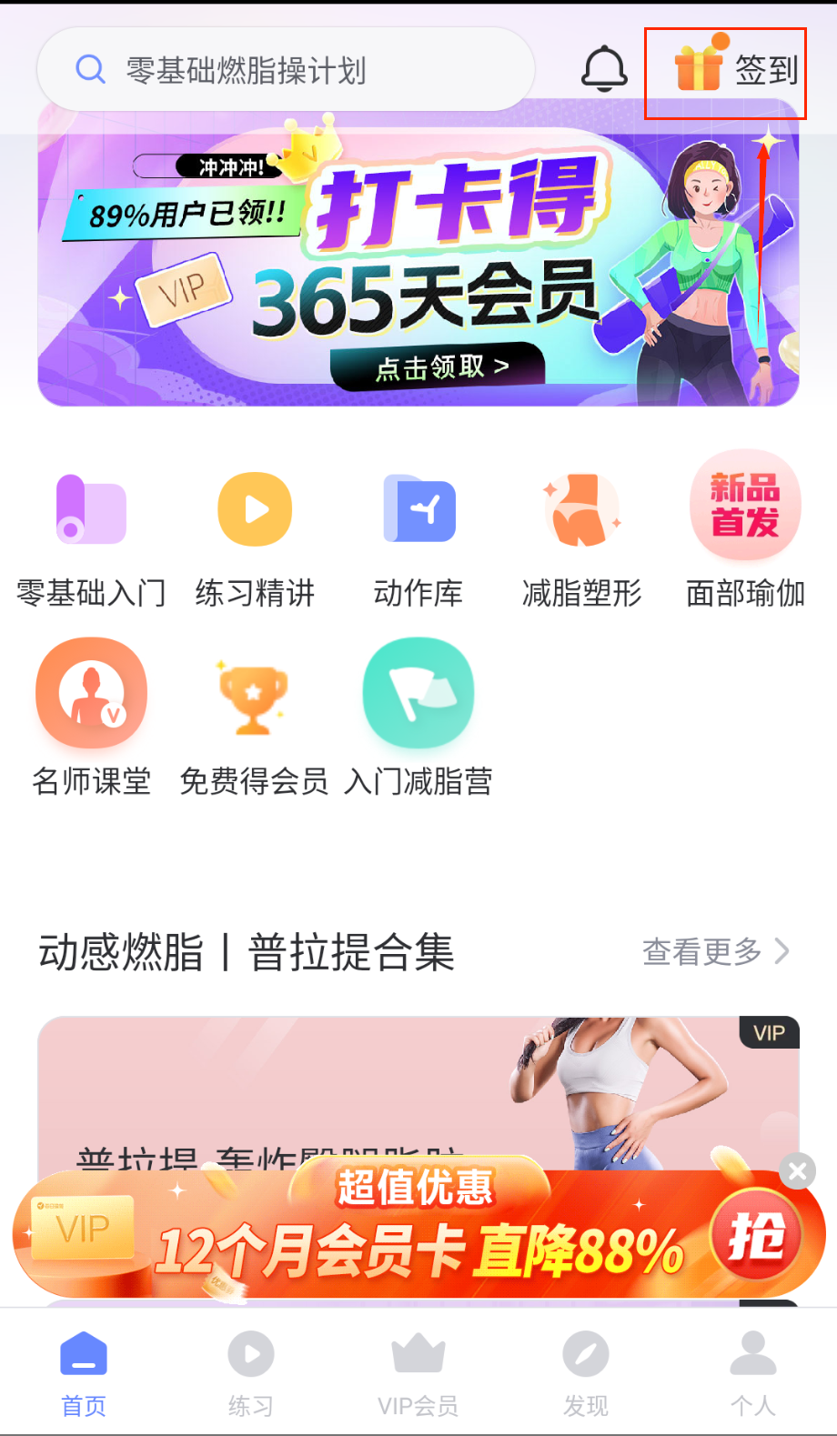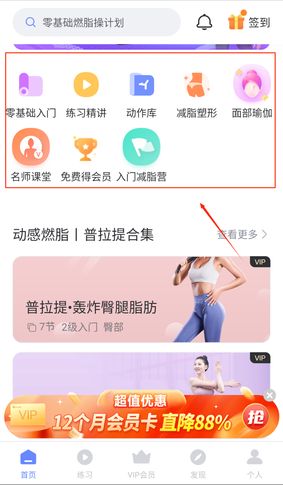 1、新用户注册后,可在“课程”板块根据目标(如减脂、塑形)或时长(5-45分钟)筛选免费课程。
