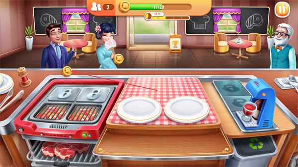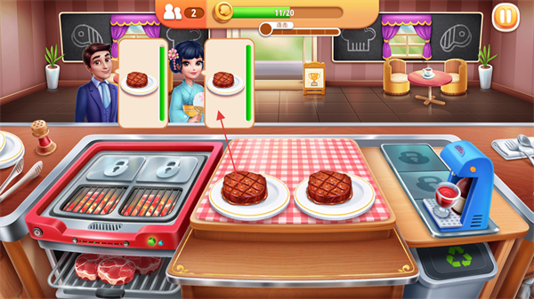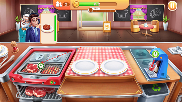 拥有厨艺精湛的厨师与大量厨房用具,可通过资源解锁升级,提升菜品制作效率与品质。