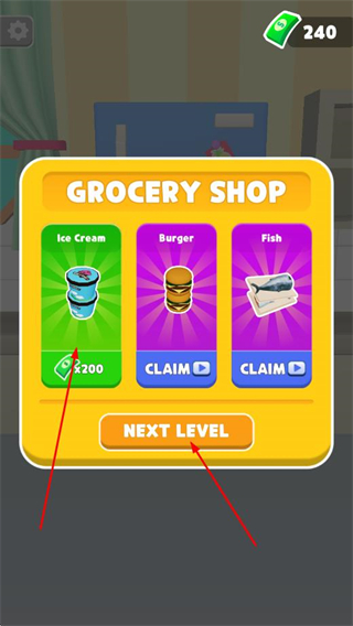 4、在关卡选择界面,可选择花费金币解锁新的物品类别,点击NEXT LEVEL进入下一关。