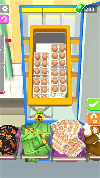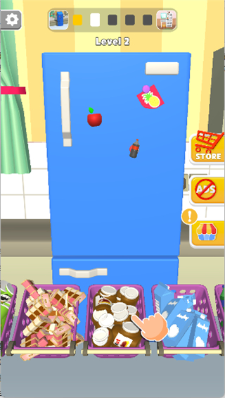 关卡难度逐渐递增,从简单的冰箱空间整理到复杂的多类物品摆放,每一关都有新的挑战,让玩家逐步提升自己的整理能力和空间规划能力,保持挑战性和探索欲。