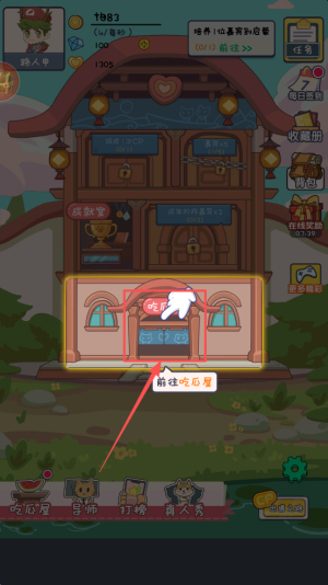 3、然后,点击“前往吃口屋”按钮以访问游戏内特定区域。