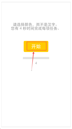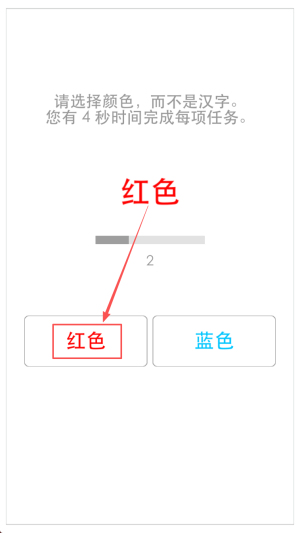 3、然后,在出现“红色”汉字但字体为蓝色时,立即点击蓝色按钮。