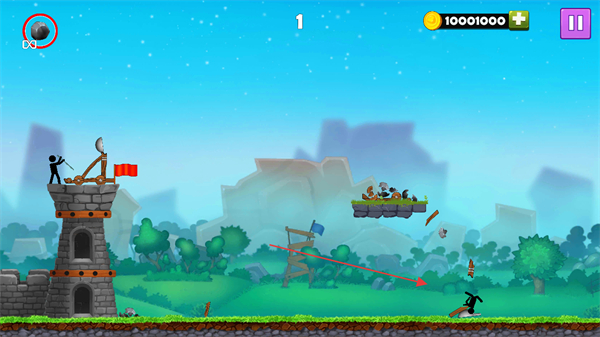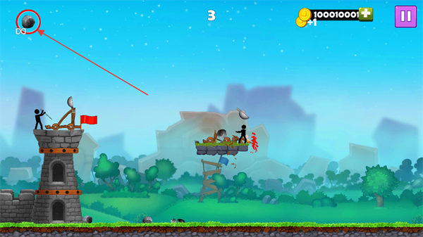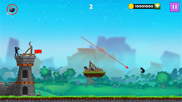 火柴人投石车MOD作弊菜单是一款以火柴人为题材的策略对战作品,玩家需在防御敌人进攻的同时,操控投石机将对方击落到平台下方,成功击落敌人后可获取硬币,硬币可用于购买升级道具,包括炸弹、护盾、铠甲以及投石机本身的强化,双方各控制一名火柴人,初始拥有相同数量的生命,对战过程中还会随机出现乌鸦,击中乌鸦能获得特殊投掷物。