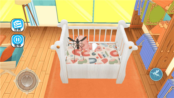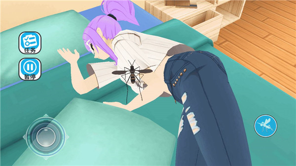 通过虚拟摇杆控制蚊子移动,点击按钮完成吸血动作,操作逻辑简单,新手几分钟内即可掌握飞行与躲避技巧。