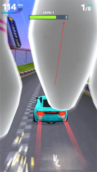 4、驾驶赛车冲向终点,完成Level1比赛,解锁后续关卡。