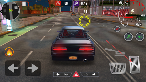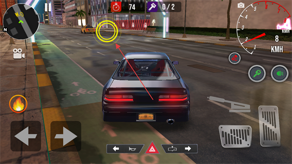 2、在城市道路中行驶,瞄准黄色圆环区域,驾驶车辆穿过以完成任务目标。