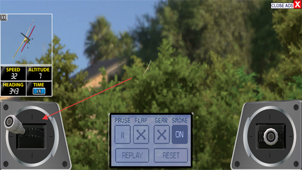 3、通过左侧的控制杆调整飞机的油门和方向,控制飞机的速度和航向。