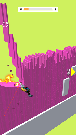 2、操控切片工具切割粉色障碍物,降低其高度,推进关卡进度,注意躲避白色方块等障碍物。