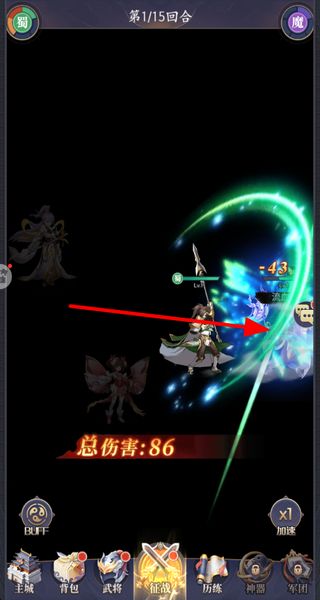 1、进行招募操作,可选择招募1次或10次,随机获得2到5星武将,积累武将阵容。
