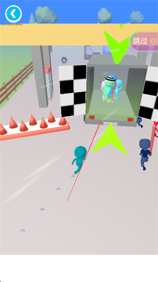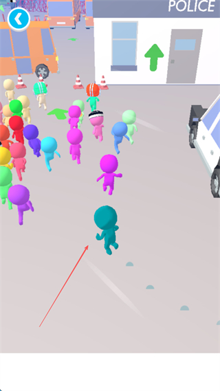 1、操控角色在人群中奔跑,避开障碍物,朝着带有绿色箭头的目标方向前进。