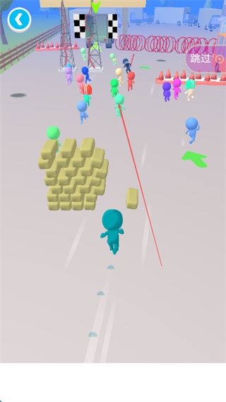 2、在跑道上躲避路障,如石块堆,沿着路径冲向终点区域。