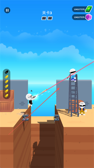 2、瞄准敌方目标,发射子弹,利用子弹弹射消灭多个敌人。