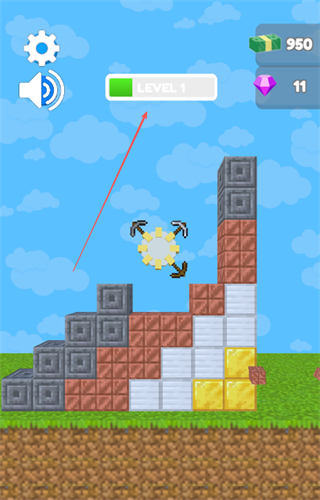 4、不断挖掘方块,积累金币和钻石,用于解锁更高级的钻头或开启新关卡。
