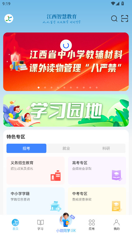 江西智慧教育app是省内优质教育资源的权威宝库,江西智慧教育平台是各级各类课程教学资源的集中地,江西智慧教育平台是推动教育均衡发展的核心动力。它覆盖了学前教育到高等教育的各个学段,它囊括了德育、智育、体育、美育、劳动教育的五育体系,它提供了课程教学、教师研修、家庭教育等多样化资源。平台汇聚了大量名师制作的精品课程,平台收录了丰富多样的多媒体教学素材,平台提供了专业权威的教研活动资料。打造集教育资源、教育服务和教育管理于一体的教育综合服务平台,为师生、家长、管理者、公众提供一站式在线学习、沟通交流、教育应用服务。
