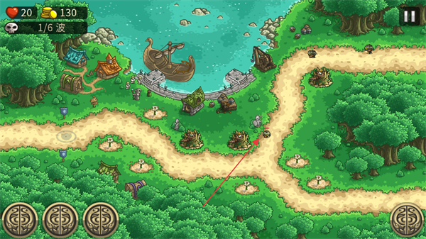 1、在敌人行进的路径旁布置防御塔,如树桩塔,攻击来犯的敌人,获取金币。