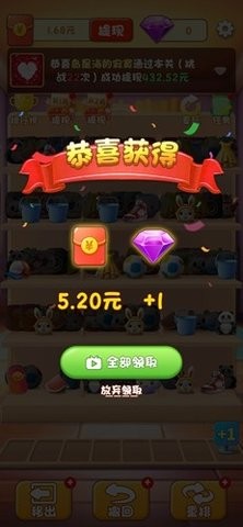 4、幸运红包:消除得分满200分,弹出幸运红包,打开即可获得奖励。