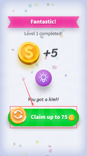 4、得到“Fantastic!”与+5hint奖励,点Q即刻进入下一关。