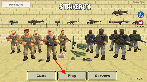 1、在游戏主界面,点击Play按钮可进入对战模式,这是开启射击对战的关键操作,准确点击才能进入战场。