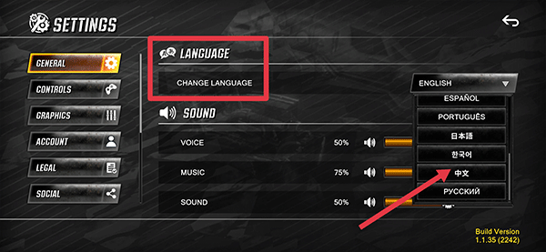 2、然后点击language右边的语言栏,找到中文并点击即可切换为中文