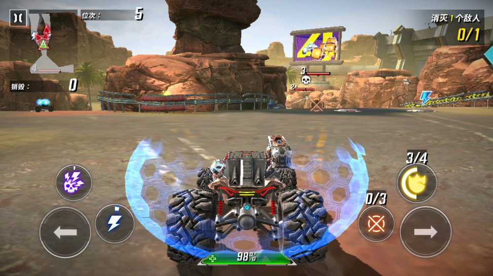 4、获得火箭后可以点击右边的攻击按键发射火箭去攻击对手的汽车
