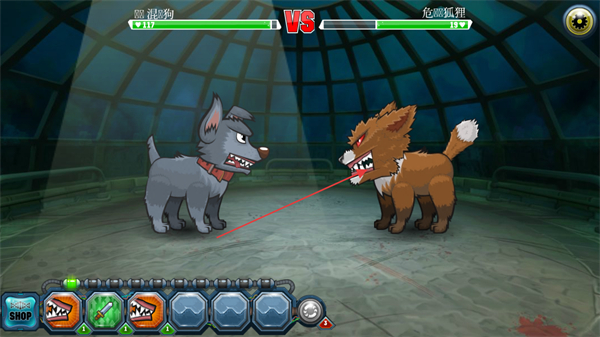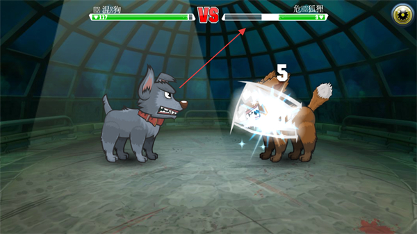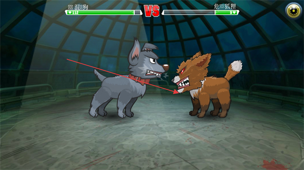1、操控邋遢狗与危险狐狸对战,选择下方攻击技能,发起进攻。