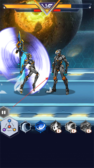 1、选择蓝色技能图标,释放技能,操控机甲战士发起攻击。