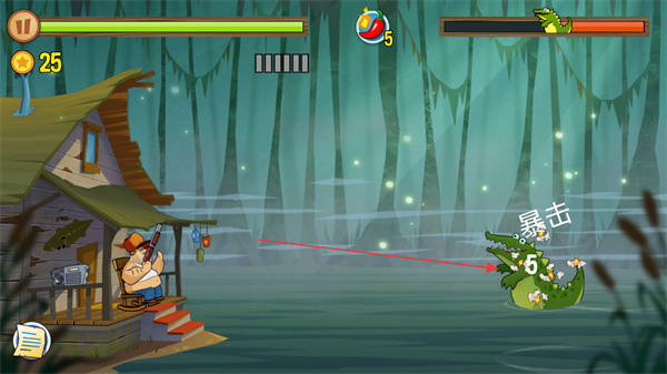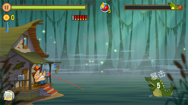 3、瞄准鳄鱼要害射击,触发暴击,快速削减其血量,积累更多分数。