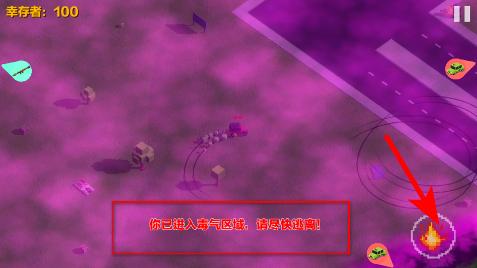 2、在游戏中驾驶汽车撞击其他幸存者,减少幸存者数量,提升自己的生存优势。