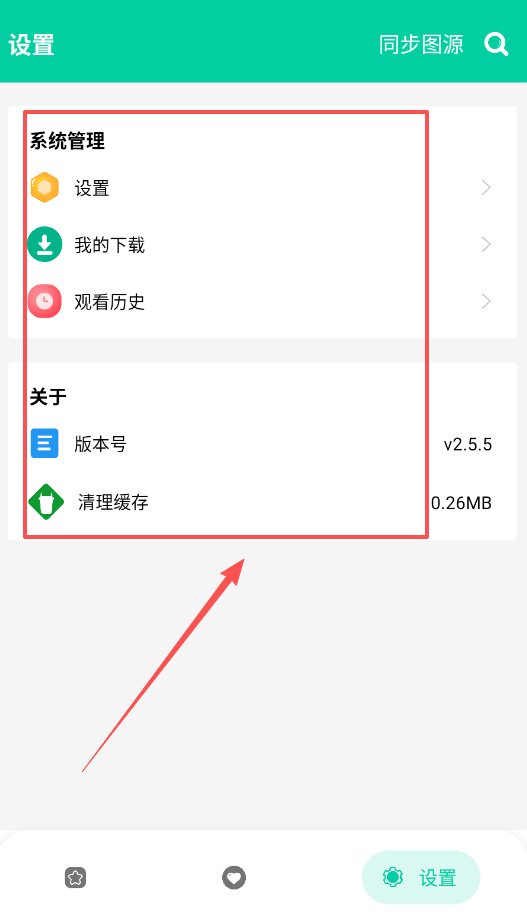 4、在设置页面中,你可以进行系统管理操作,查看观看历史记录,还能使用同步图源功能确保漫画资源及时更新。