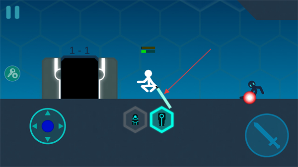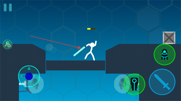 2、操控火柴人跳跃跨越平台,利用长剑攻击沿途敌人,注意躲避攻击。