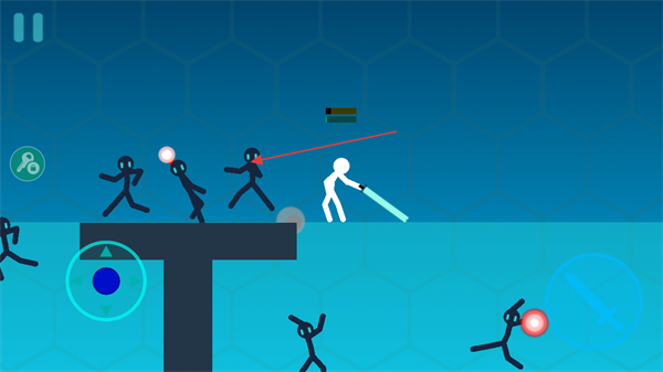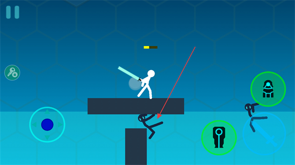 3、在平台上与敌方火柴人战斗,通过挥剑和走位,将敌人击落下平台。