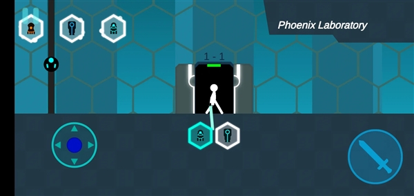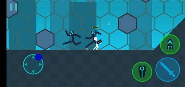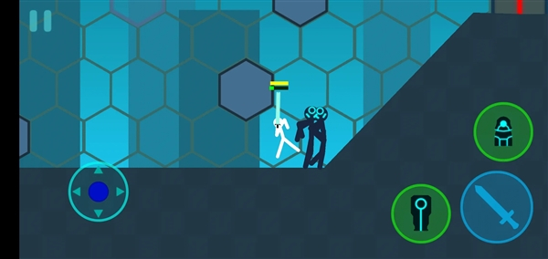 1、用左侧虚拟摇杆控制火柴人移动,点击右侧剑形按钮挥剑攻击,收集钥匙等道具。