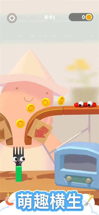 以食物为主题的闯关设定新颖别致,将香肠与叉子的相遇作为通关目标,搭配画面魔性玩法,带来与众不同的挑战体验。