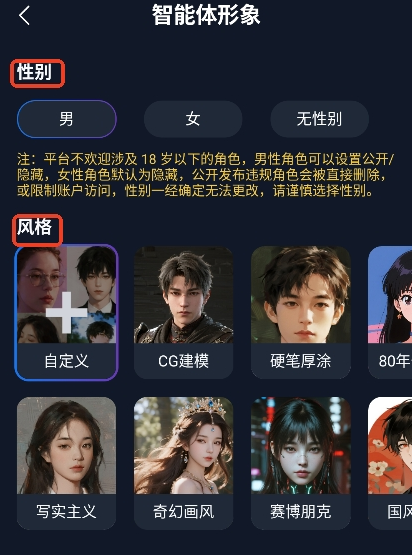 3、下滑界面,点击+,上传AI角色形象参考图,最后点击生成形象即可