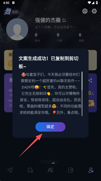 1、打开DadyAI软件,点击最下方中间的AI界面
