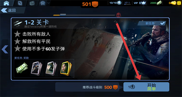 2、可以点击章节1中的第二关,进入查看关卡详情。