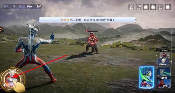 3、点击头像释放终结技,利用满能量值的优势,对怪兽造成巨额伤害,提升终结怪兽能力。