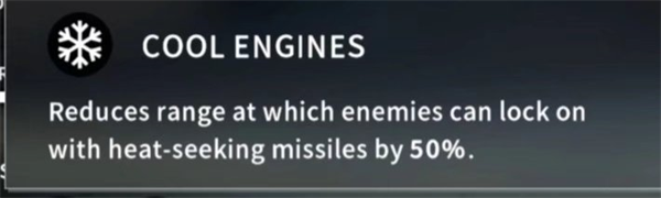 减少50%被红外导弹锁定的射程,红外导弹射程2.8km故需要1.4km才能对你进行锁定