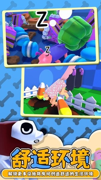 2、画风十分鲜艳的3d宠物模拟养成类游戏,玩家能够在游戏中领养一只奇怪的变异狗狗;
