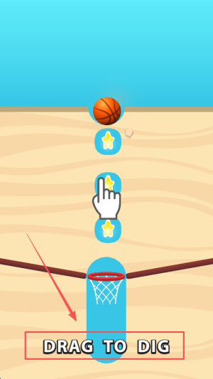 3、开始挖掘:在关卡界面,查看DRAG TO DIG提示,按住并拖动开始挖掘。