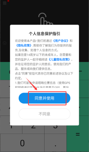 1、启动应用后,在个人信息保护页面点击同意并使用选项。