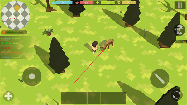 4、持续攻击生物,击败后获取生存物资,推进生存进度。
