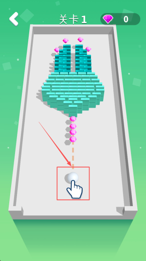 3、推动方块:在再次出现“关卡1”时,拖动角色将方块推到目标位置。